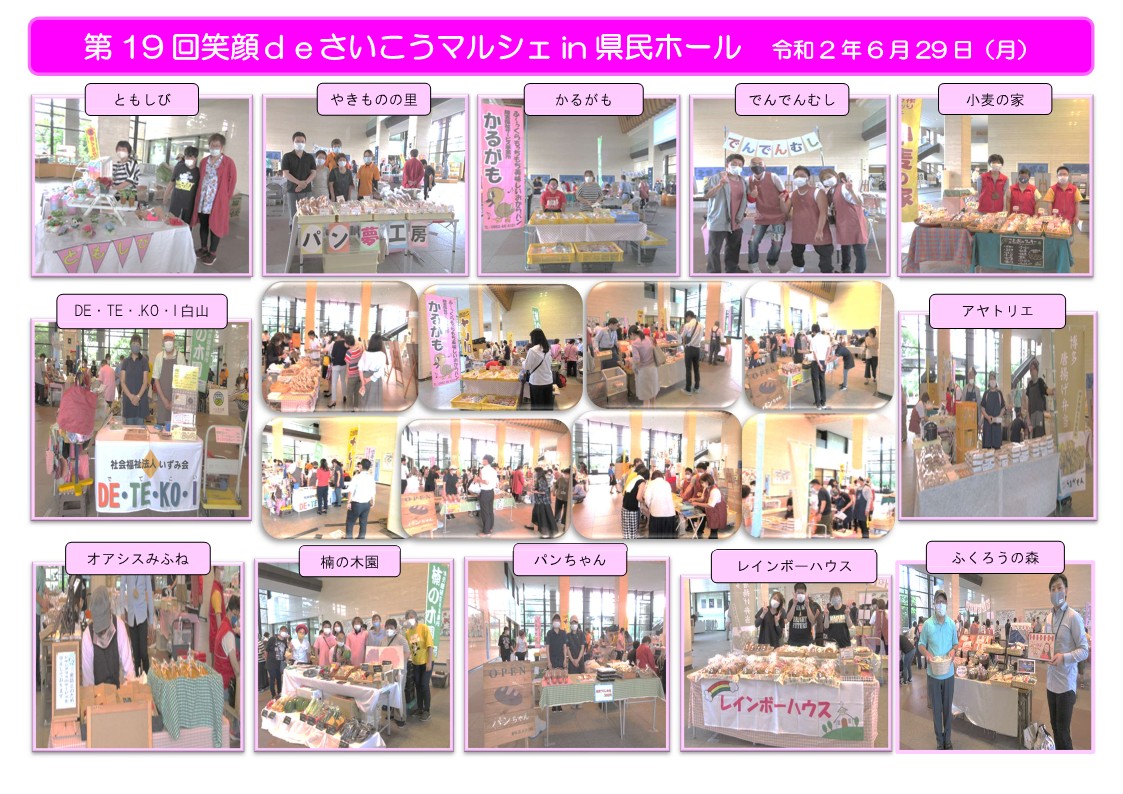 第19回『笑顔deさいこうマルシェin県民ホール』 販売会参加施設:12施設