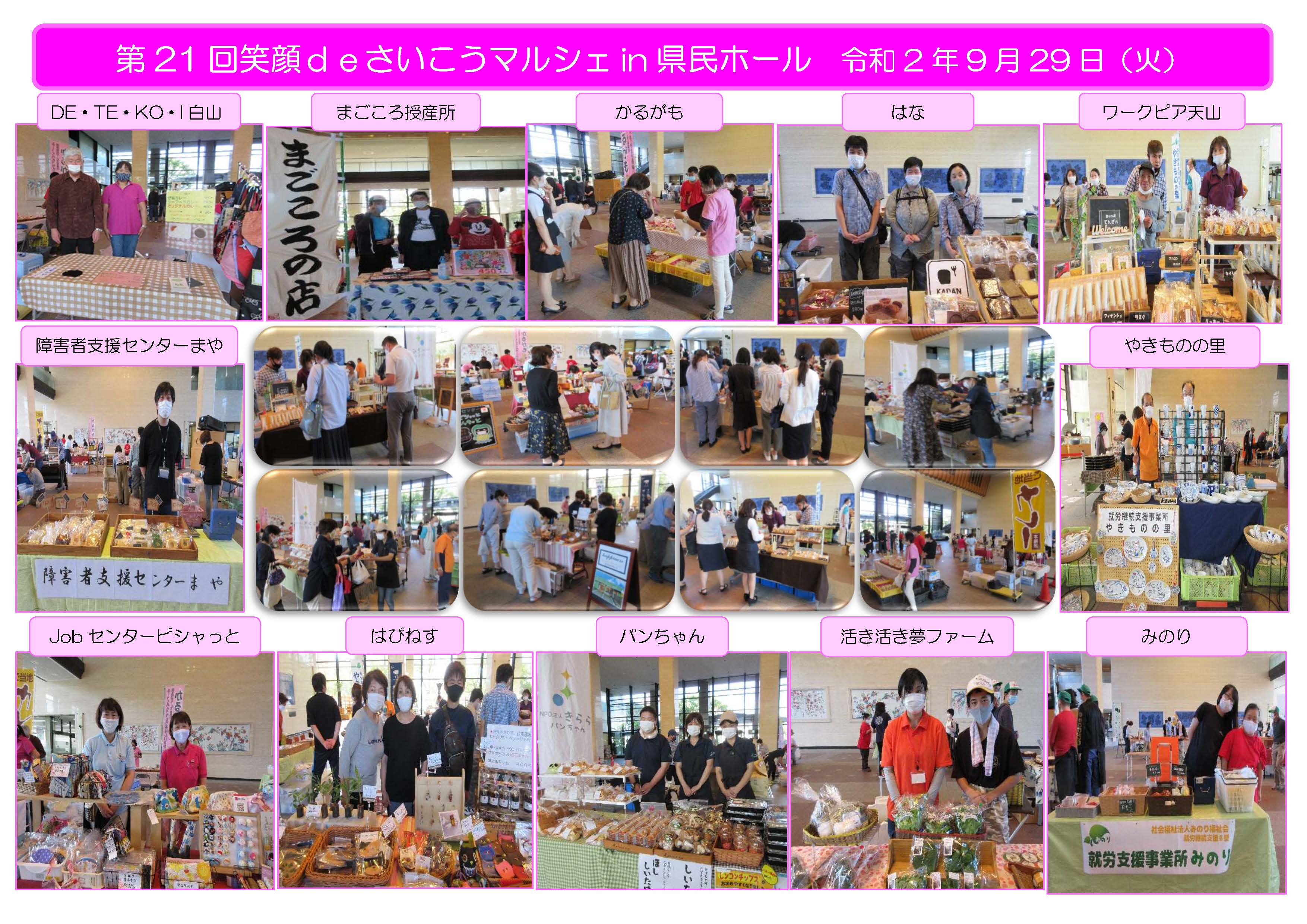 第20回『笑顔deさいこうマルシェin県民ホール』 販売会参加施設:12施設