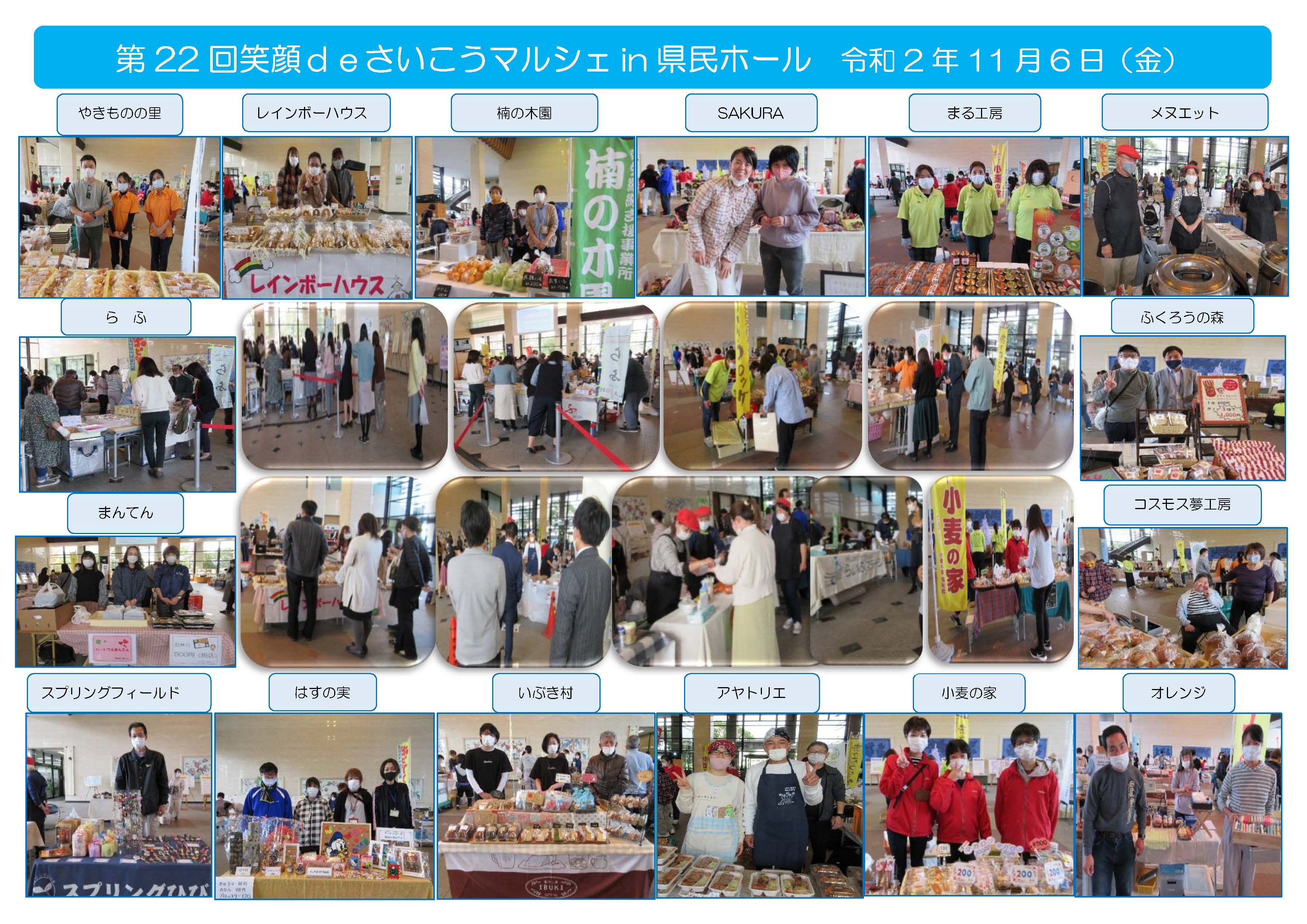 第22回『笑顔deさいこうマルシェin県民ホール』 販売会参加施設:16施設